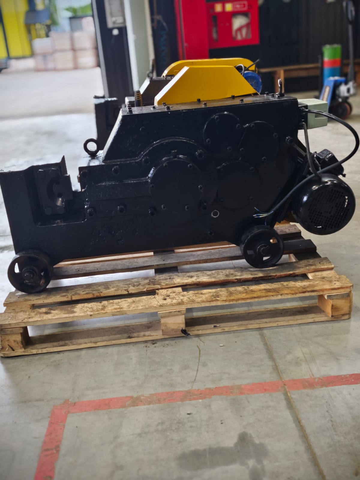 - удобство переноса станка обеспечивается колесами, на которые опирается станок (можно снять при стационарном использовании), а также специальные рым-болты для зацепа крюком подъёмного крана.