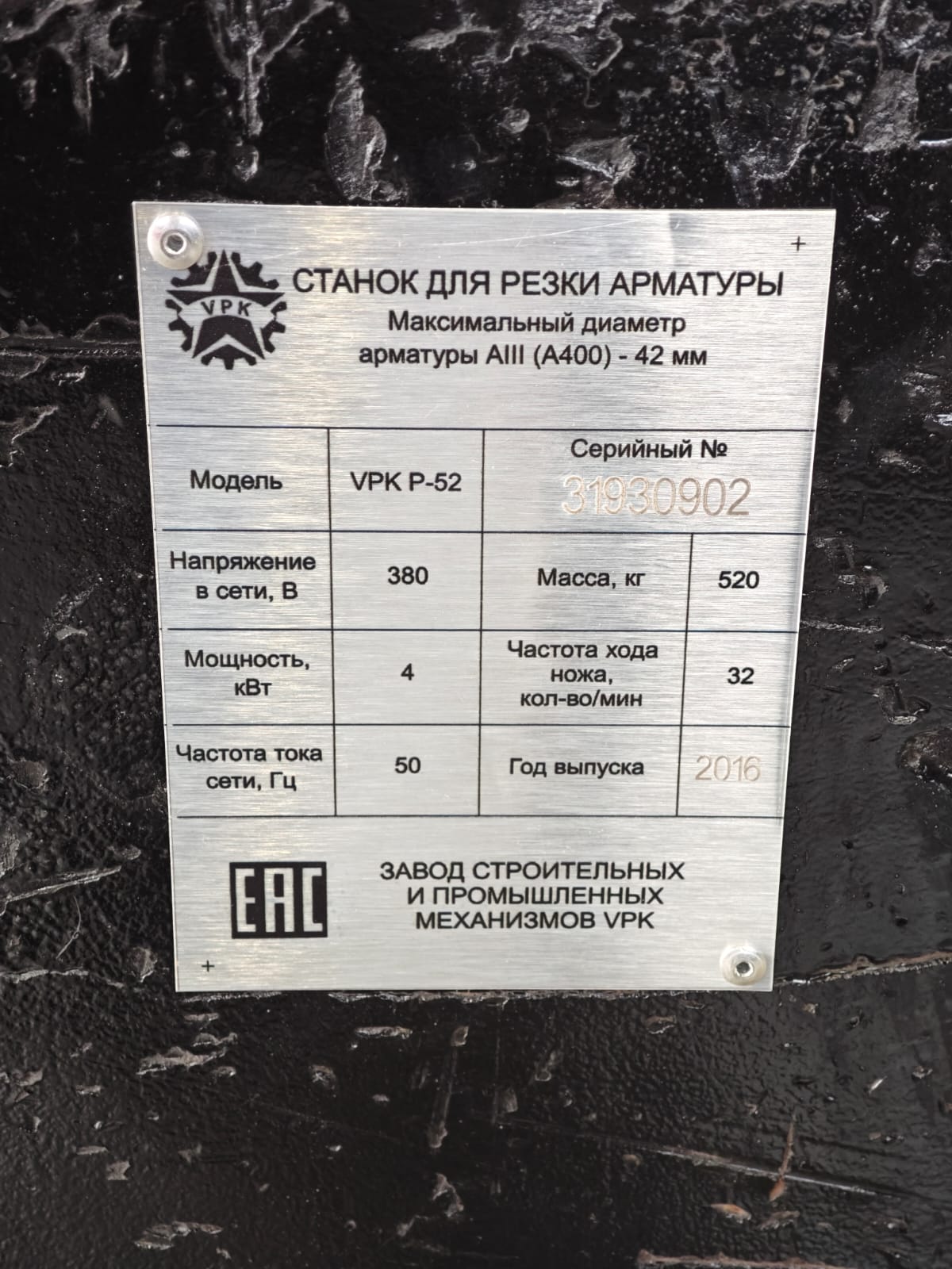 На станке VPK Р-52 двигатель через маховик и редуктор передает вращение на коленчатый вал и шатун, таким образом реализуется возвратно-поступательное движение ножа, и соответственно, резка арматуры.