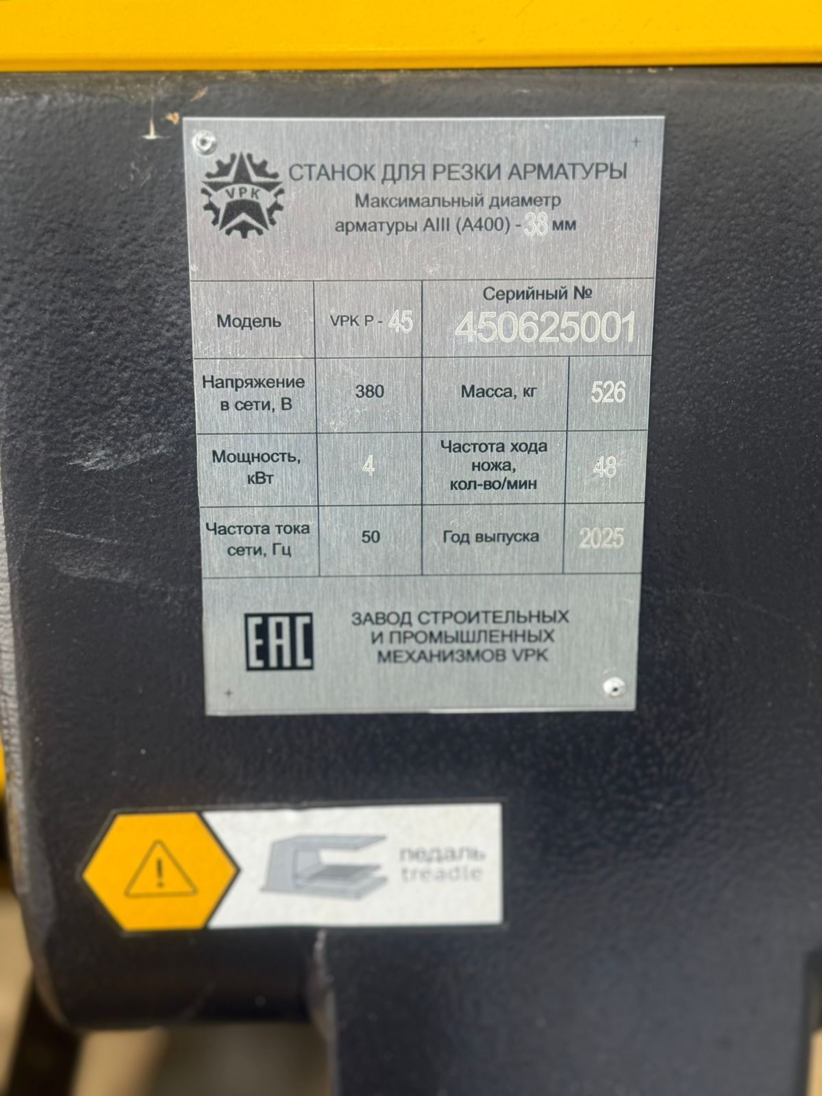 Станок для резки арматуры ВПК Р-45 имеет следующие характеристики: