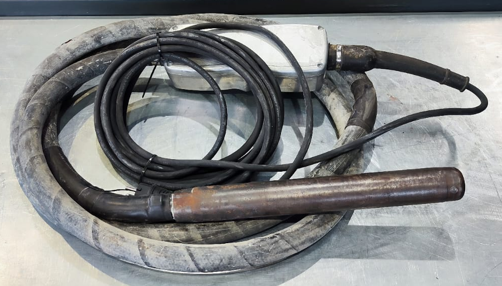 Глубинный вибратор серии VPK E-tron состоит из: вибробулавы, где находится электрический мотор,резинового кабеля, в которой находятся провода, питающие двигатель,герметичной кнопочной панели с выключателем,кабеля питания с вилкой, подсоединяемого к сети напряжением 230 В и частотой 50/60 Гц.