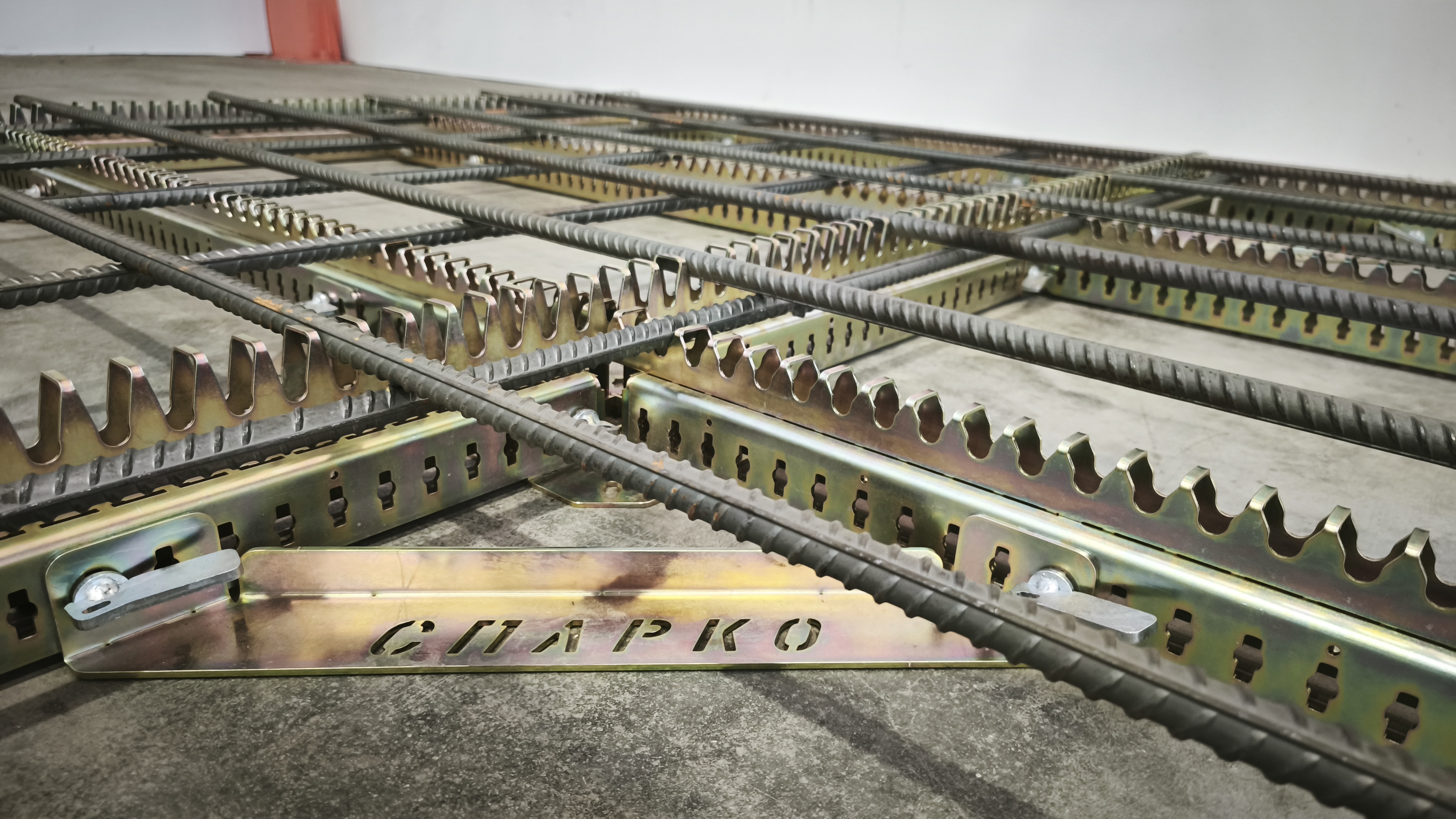 Модульная система для сборки пространственных арматурных каркасов СПАРКО предназначена для точного, быстрого и безопасного позиционирования и фиксации элементов арматурных каркасов (хомутов, колец, продольных и поперечных стержней) перед их вязкой или сваркой.