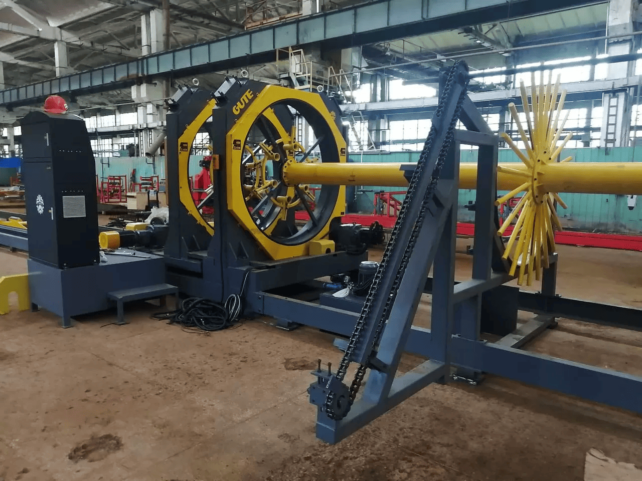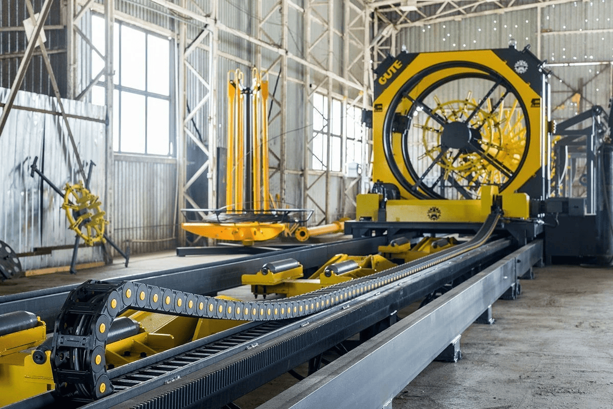 Полуавтоматическая линия с ЧПУ для навивки и сварки каркаса из арматурной стали. Скорости движения и выпрямления арматуры контролируются. Диаметр каркаса 300-1500 мм. Диаметр навивочной арматуры 5-14 мм. Максимальная длина каркаса 12 метров.