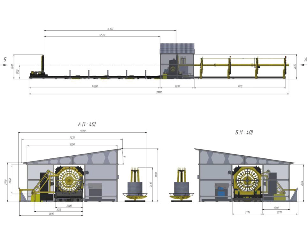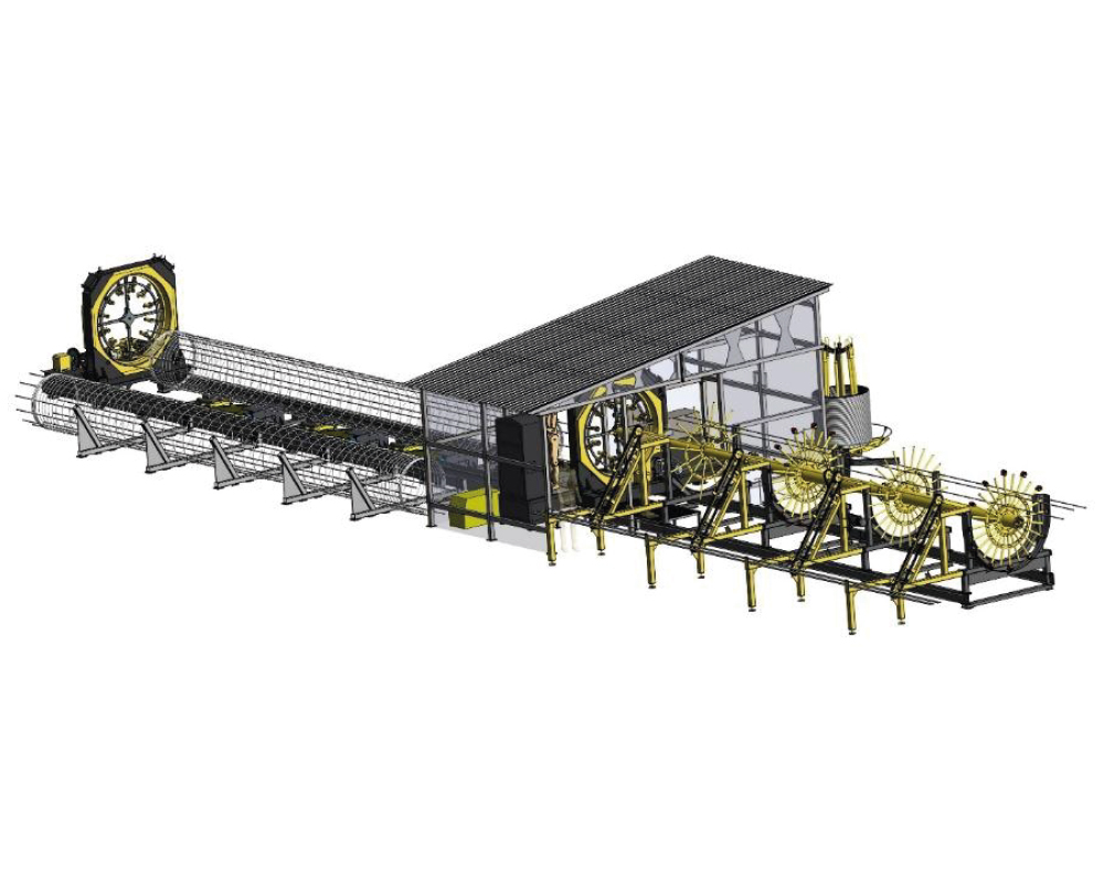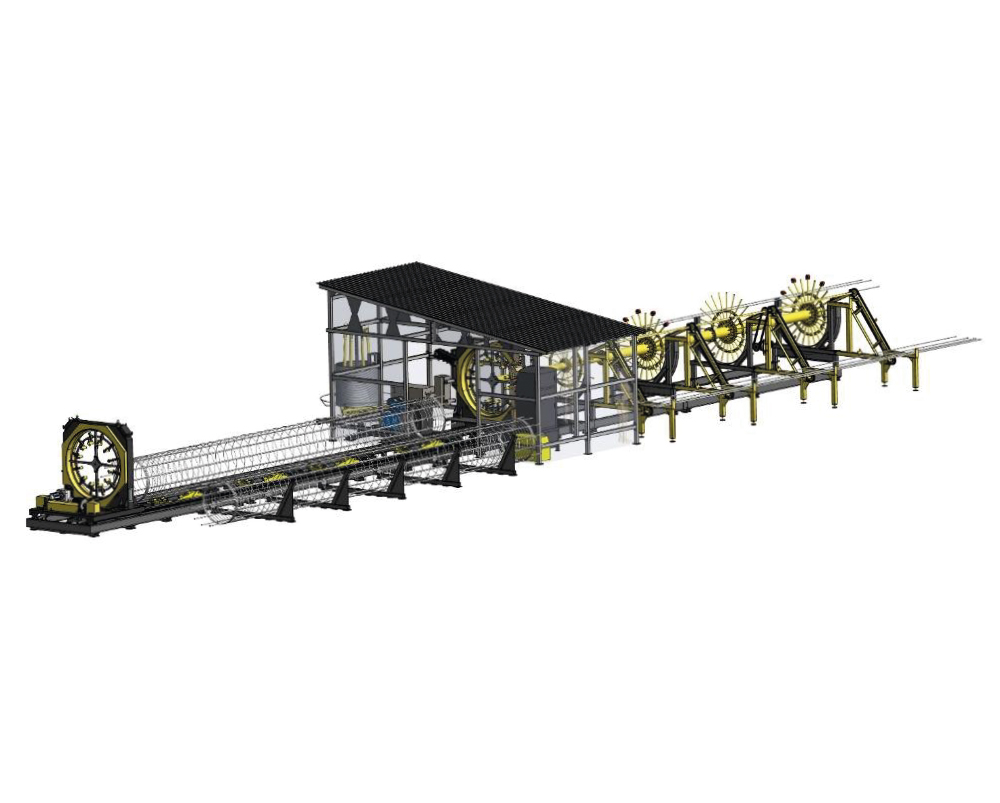 Размеры и расположение конструкции обеспечивают свободный доступ оператора к пульту управления, стационарному и подвижному порталам, сварочному модулю без необходимости выхода за пределы конструкции для работы и обслуживания. Электрический тепловентилятор максимальной мощностью 30 кВт с возможностью регулировки температуры и потока воздуха (поставляется с выносным терморегулятором) обеспечивает необходимый температурный режим для работы оборудования и комфорта оператора. В базовой версии выгрузка каркаса может производиться как в вертикальном (кран, манипулятор), так и в горизонтальном направлении (методом «скатывания») в зону приёмщика готовых изделий.