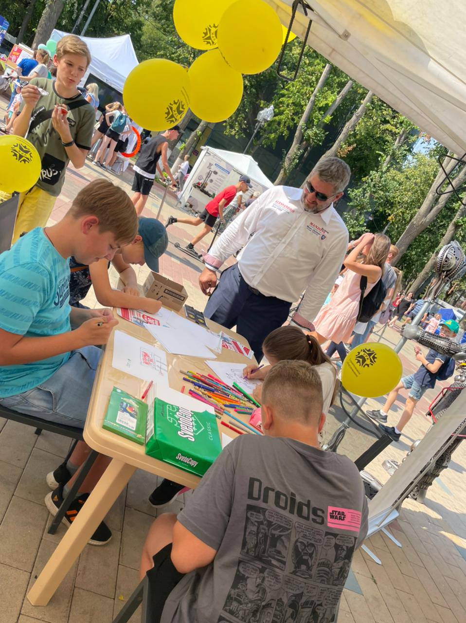 Юным посетителям мы предлагали поучаствовать в конкурсе рисунков на тему «Робот ВПК». У детей получились очень интересные рисунки роботов, и за участие в этом конкурсе компания награждала их различными подарками и воздушными шарами.