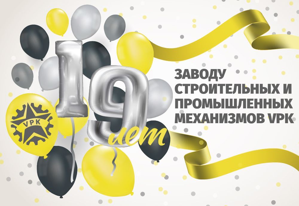 Дорогие друзья, коллеги и партнёры! Сегодня мы отмечаем важный праздник – заводу строительных и промышленных механизмов VPK исполняется 19 лет!
