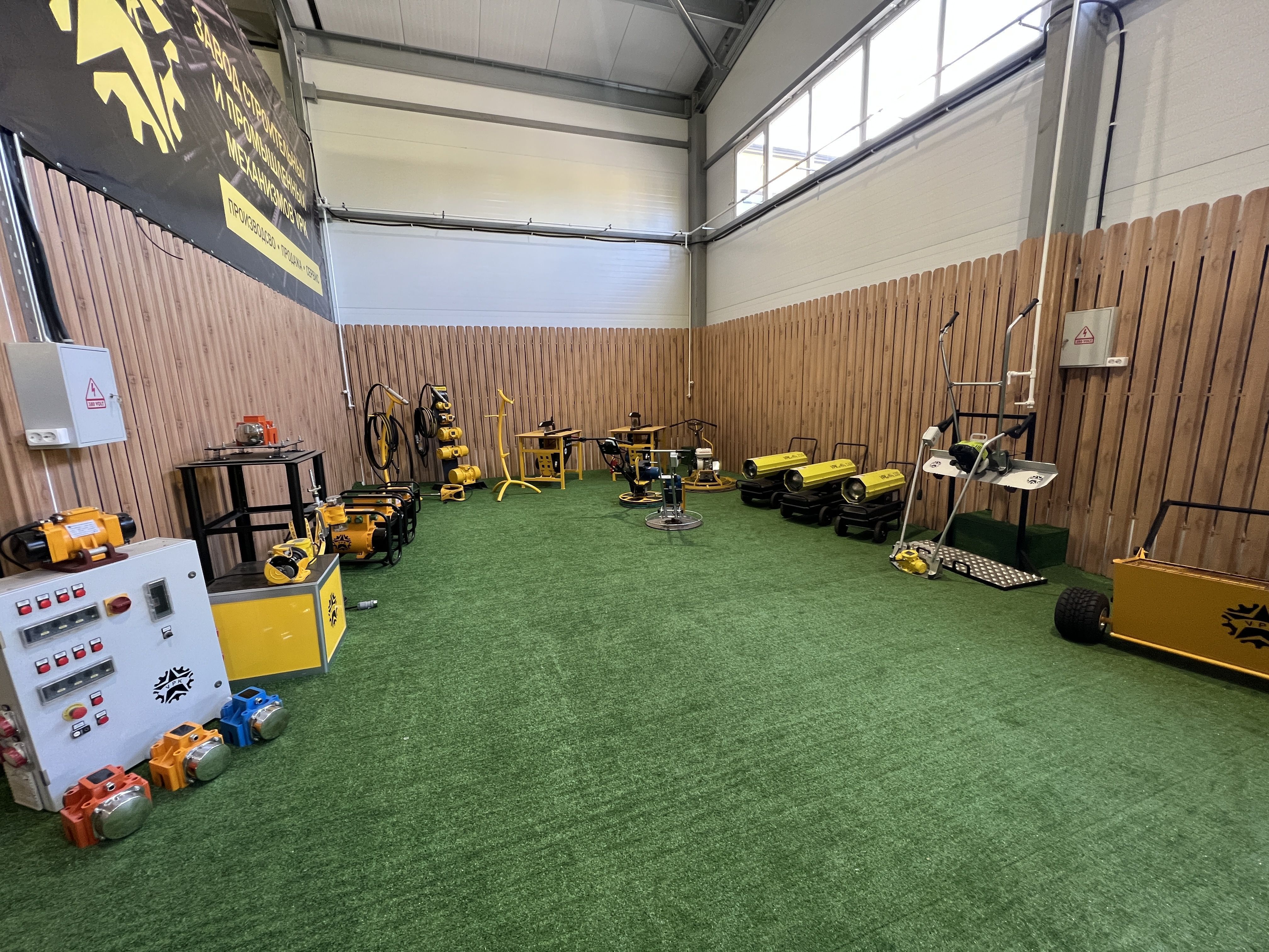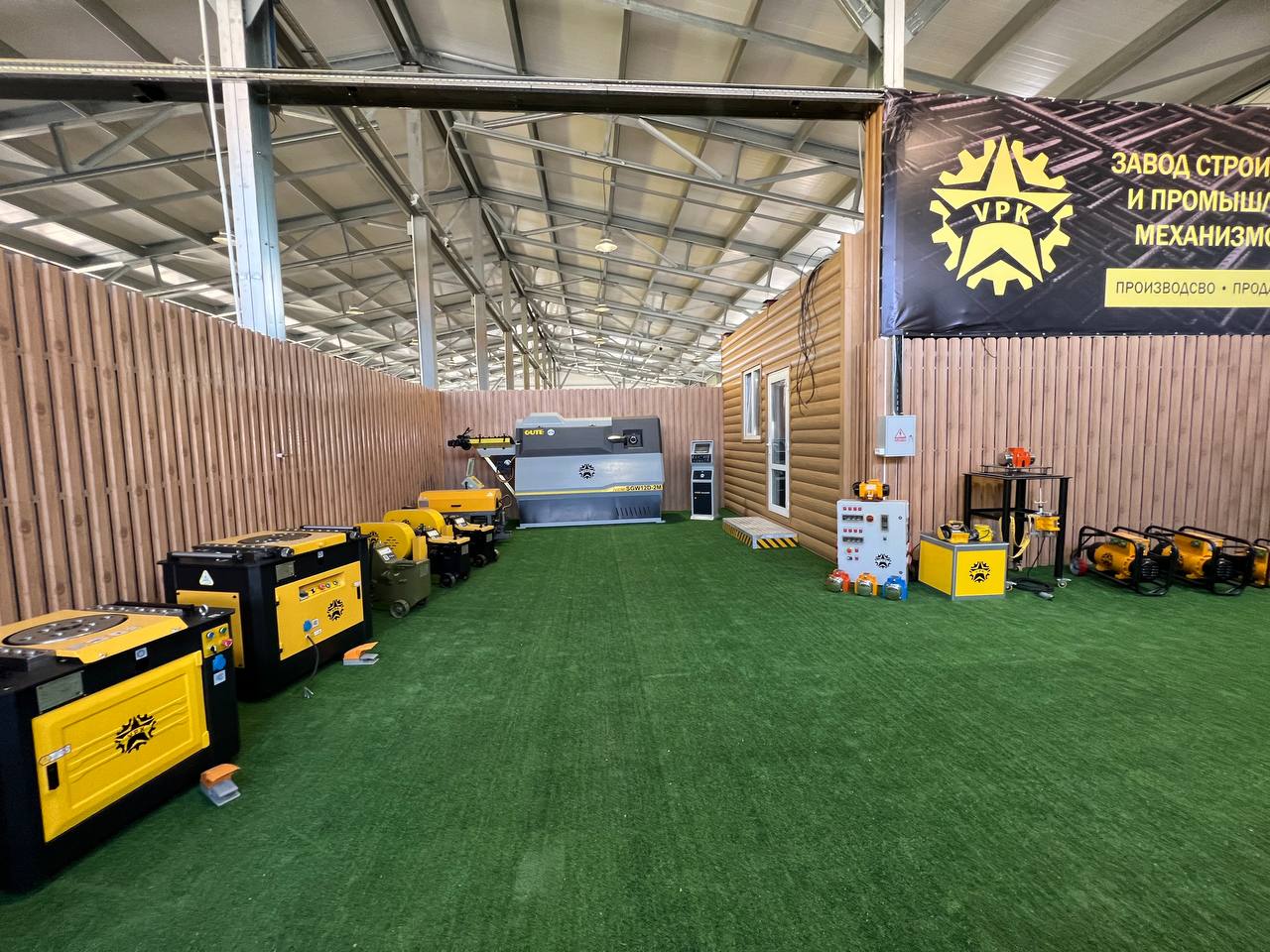 На нашем производстве находится шоу-рум, где вы сможете лично оценить все наши продукты. У нас представлен широкий ассортимент оборудования: роботизированные центры по работе с арматурой, станки для резки и гибки арматуры, площадочные вибраторы, глубинные вибраторы, плавающие виброрейки и затирочные машины.