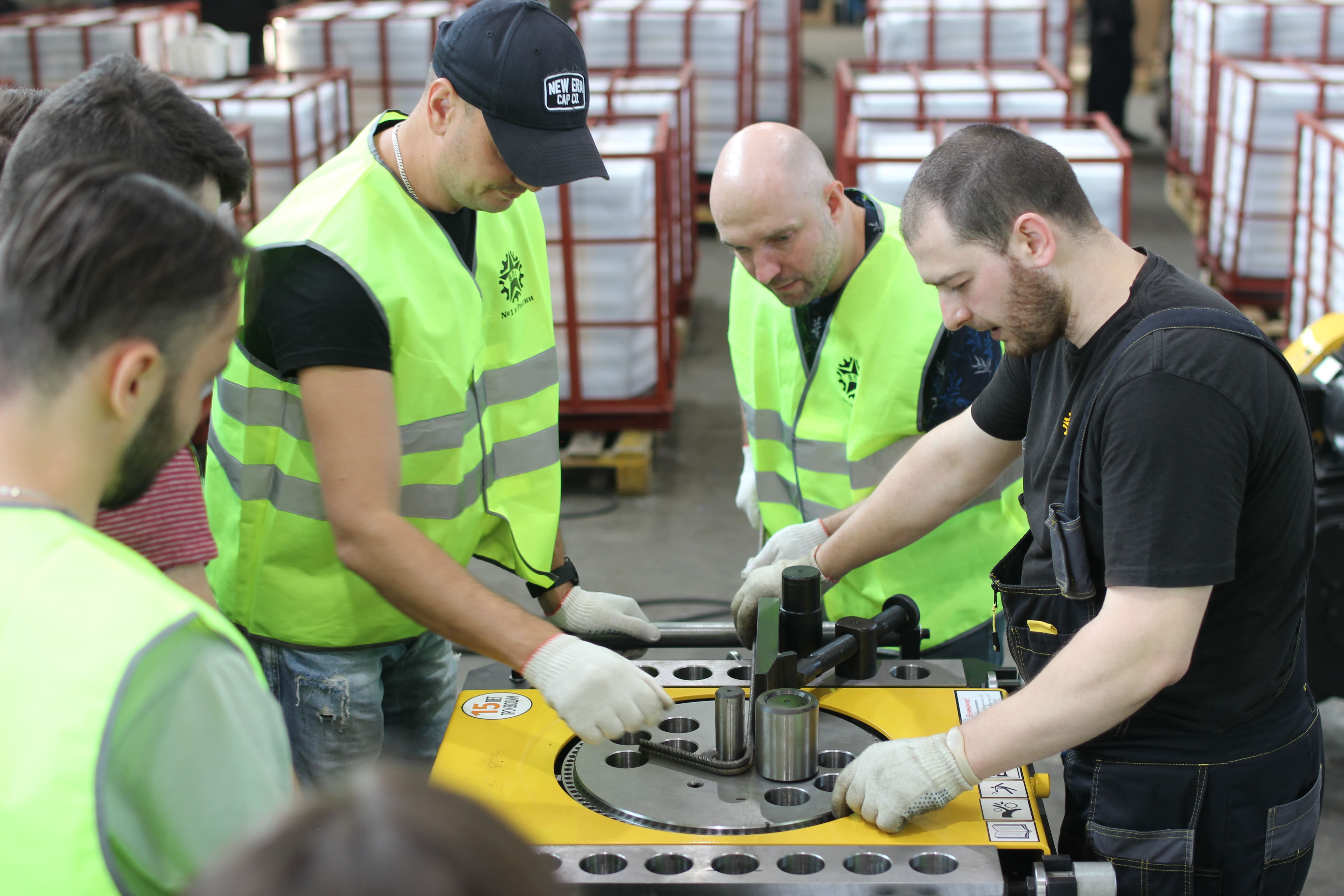 На станке для резки арматуры ВПК Р-55 резали арматуру 32 мм и сгибали арматуру для создания хомута на станке для гибки арматуры ВПК Г-52.