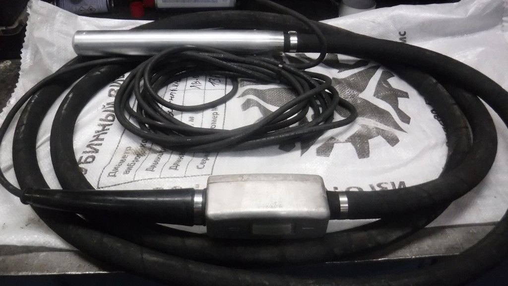 Глубинный вибратор серии VPK состоит из: булавы, в которой расположены электрический двигатель, вал и эксцентриковая масса; рабочего рукава, в котором находятся провода питания электрического двигателя; герметичного выключателя; сетевого кабеля с вилкой.