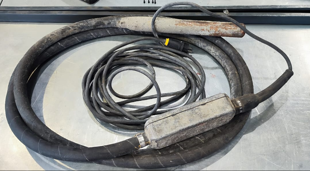 Глубинный вибратор серии VPK Electron состоит из: вибробулавы, где находится электрический мотор,резинового кабеля, в которой находятся провода, питающие двигатель,герметичной кнопочной панели с выключателем,кабеля питания с вилкой, подсоединяемого к сети напряжением 230 В и частотой 50/60 Гц.