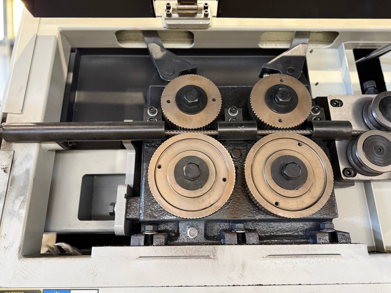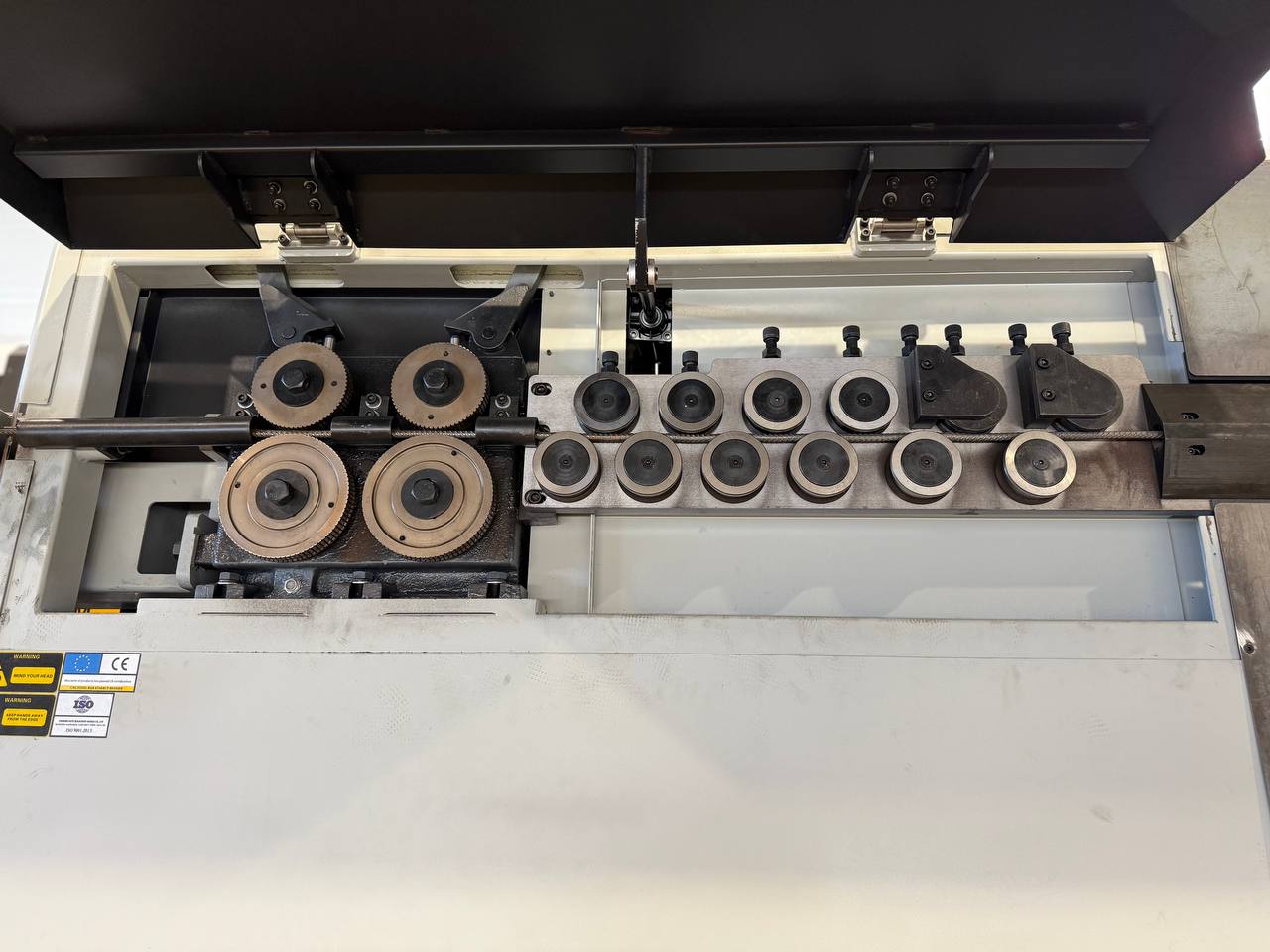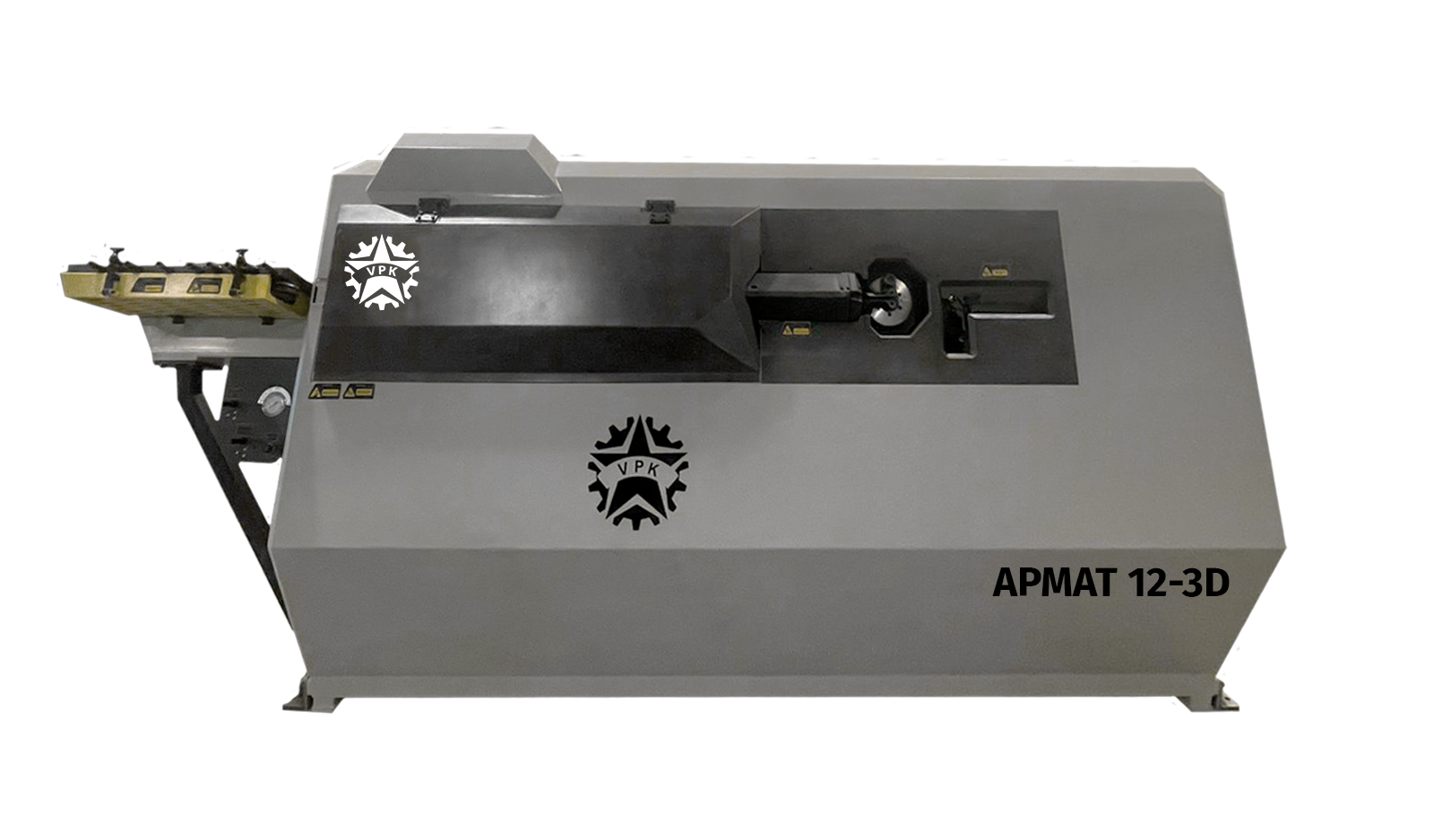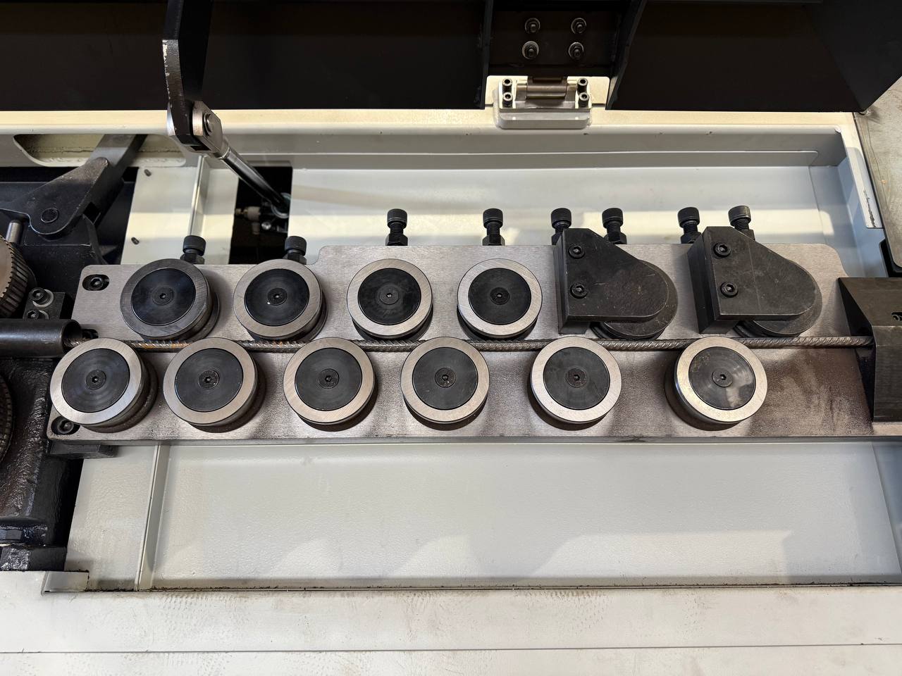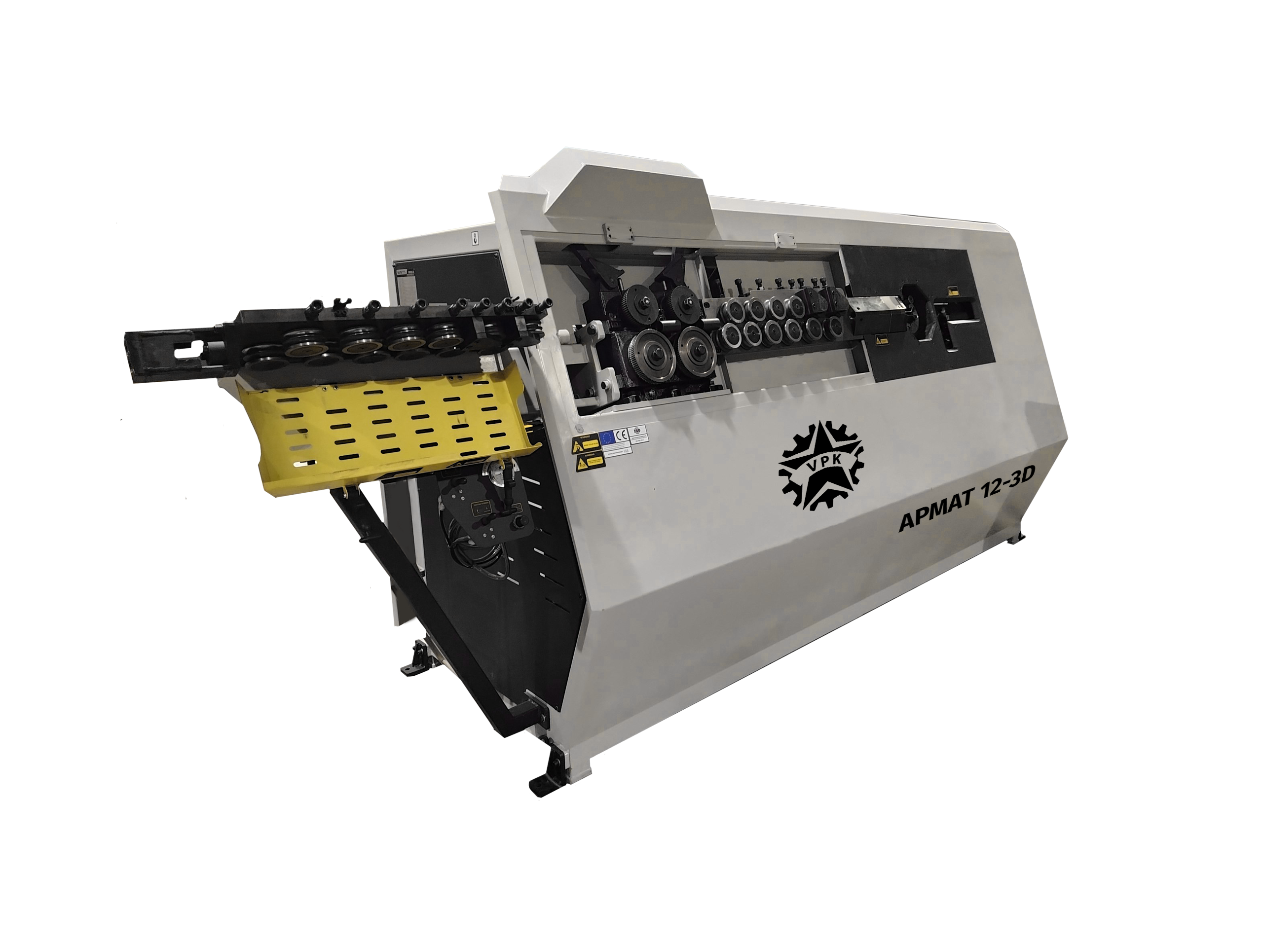 Правильно-гибочный станок с ЧПУ для работы с арматурной сталью. Возможность изготовления деталей в 3-х плоскостях. Обрабатывает арматуру диаметром до 12 мм. Максимальная скорость протяжки 100 м/мин. Мощность 16,5 кВт.