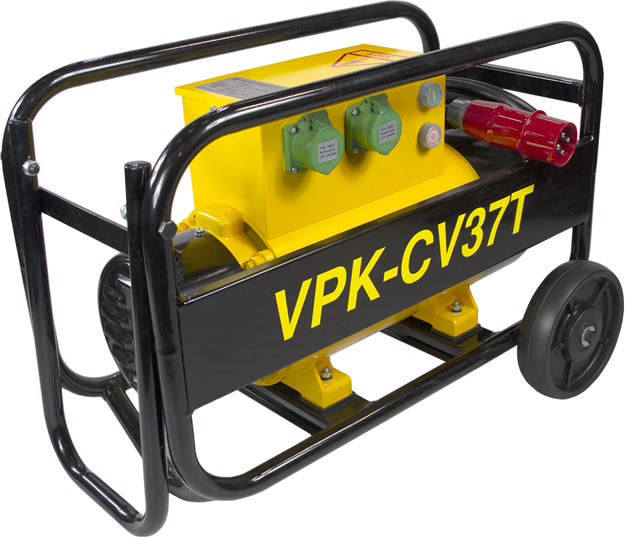 Преобразователь частоты VPK-CV37T является представителем нового поколения преобразователей частоты серии VPK. Выполняет роль понижающего трансформатора до 48В и повышает частоту тока с 50 Гц до 200 Гц,что позволяет вибратору получить высокую частоту колебаний и как следствие огромную центробежную силу.